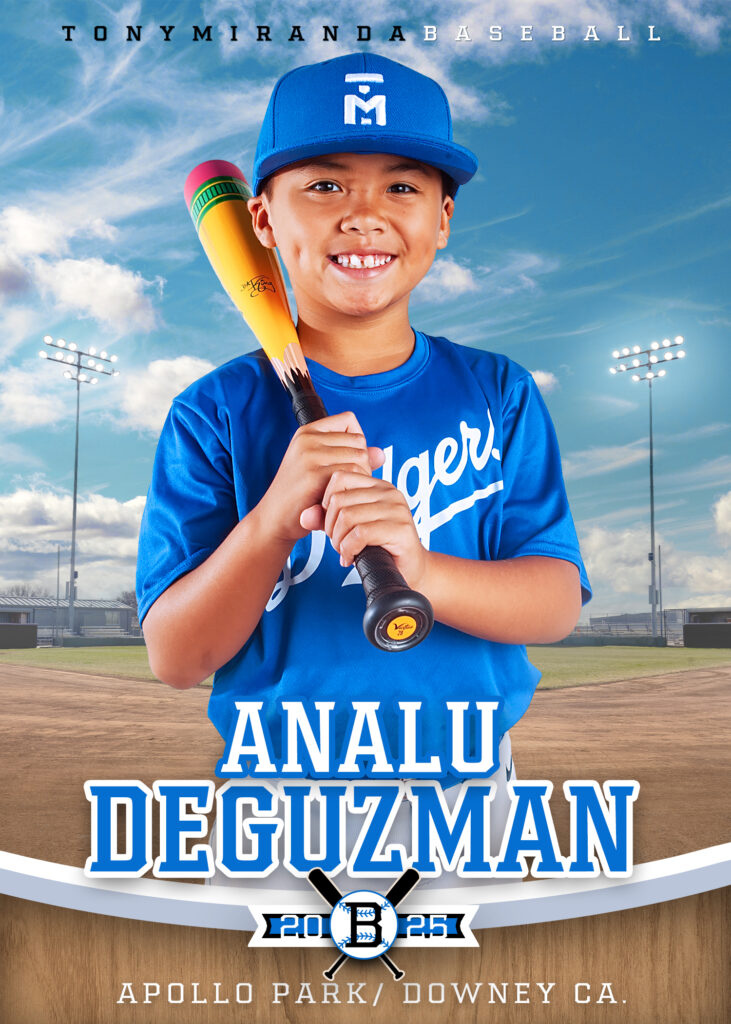 We offer a media day sports package that incorporates various cinematic themes, the athlete’s first and last name, the year the photo was captured, the name of the league, and graphics that complement the athlete’s uniform color.